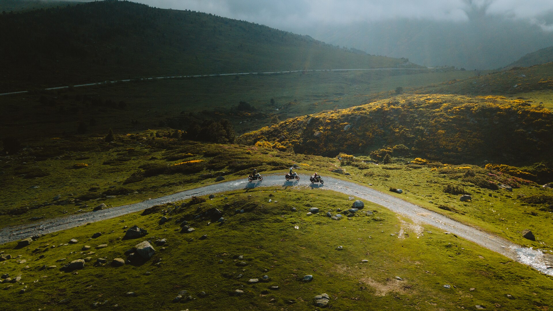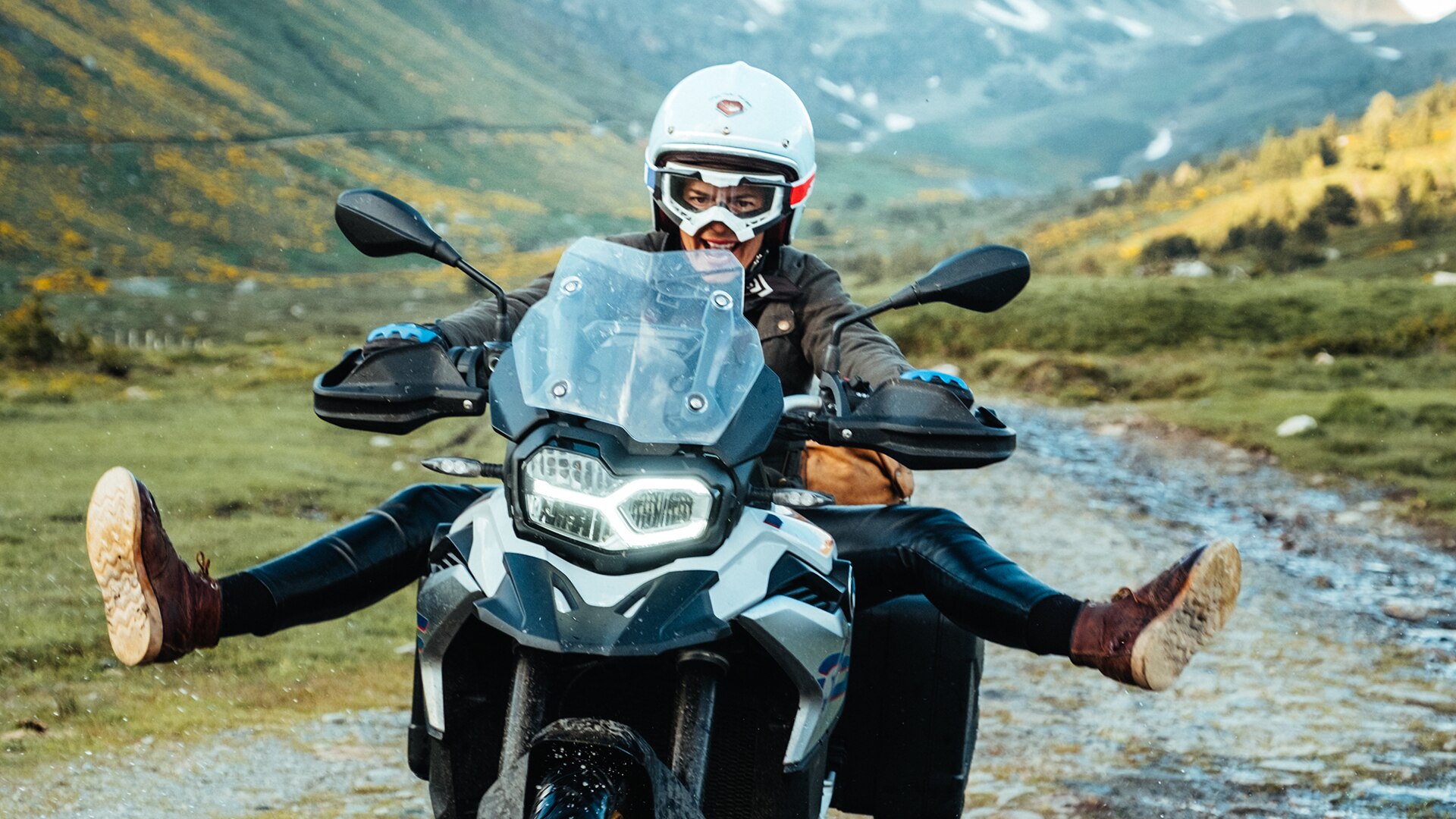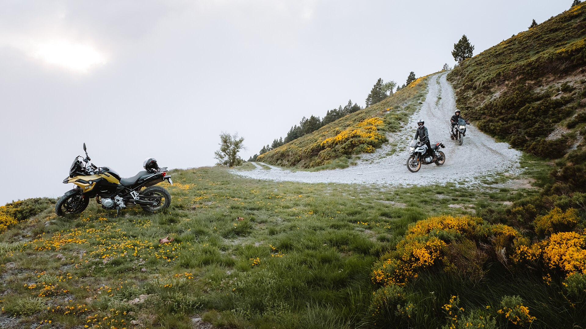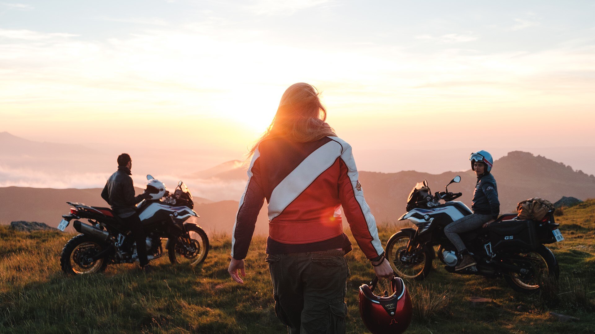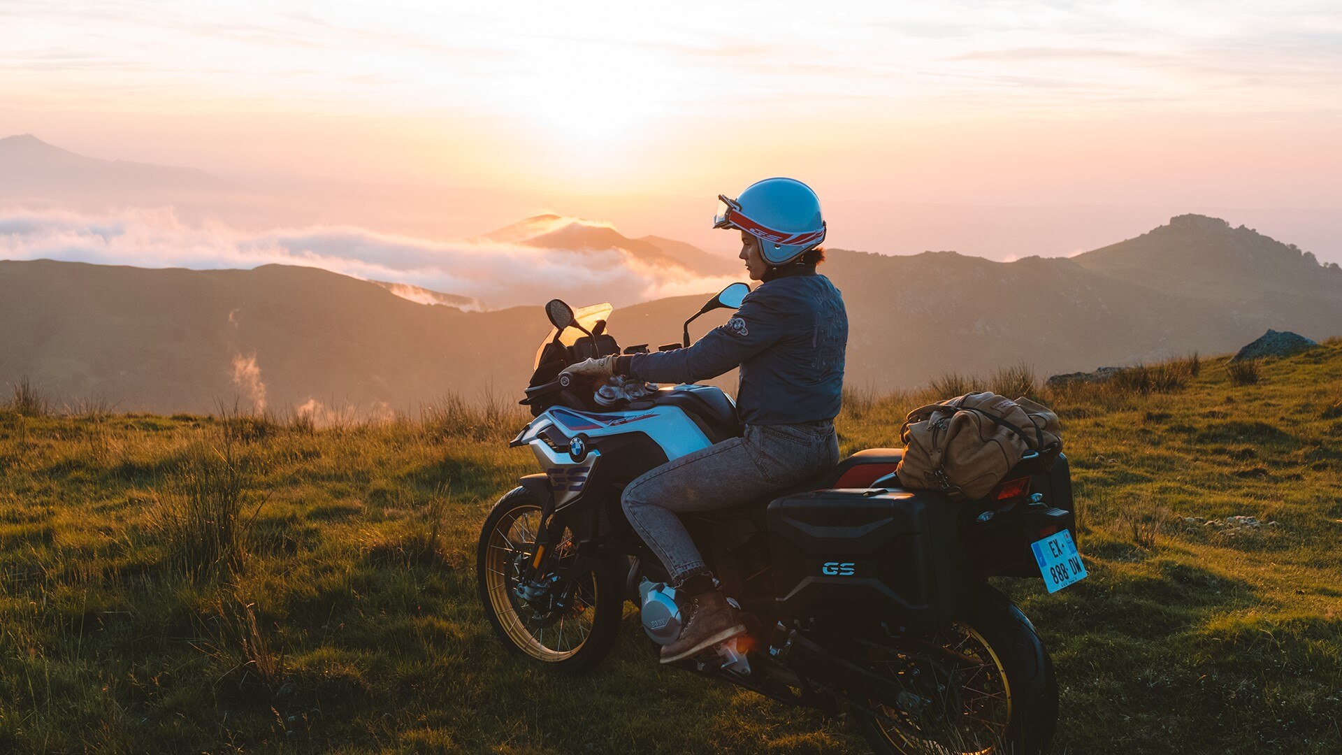 Les voilà arrivés au sommet, juste à temps pour découvrir la vue sublime d’une mer de nuages qui semble prendre feu. L’équipe a testé les F 750 GS et F 850 GS en situation de off-road sur les pentes herbeuses de la montagne, pour ne rien rater du spectacle.