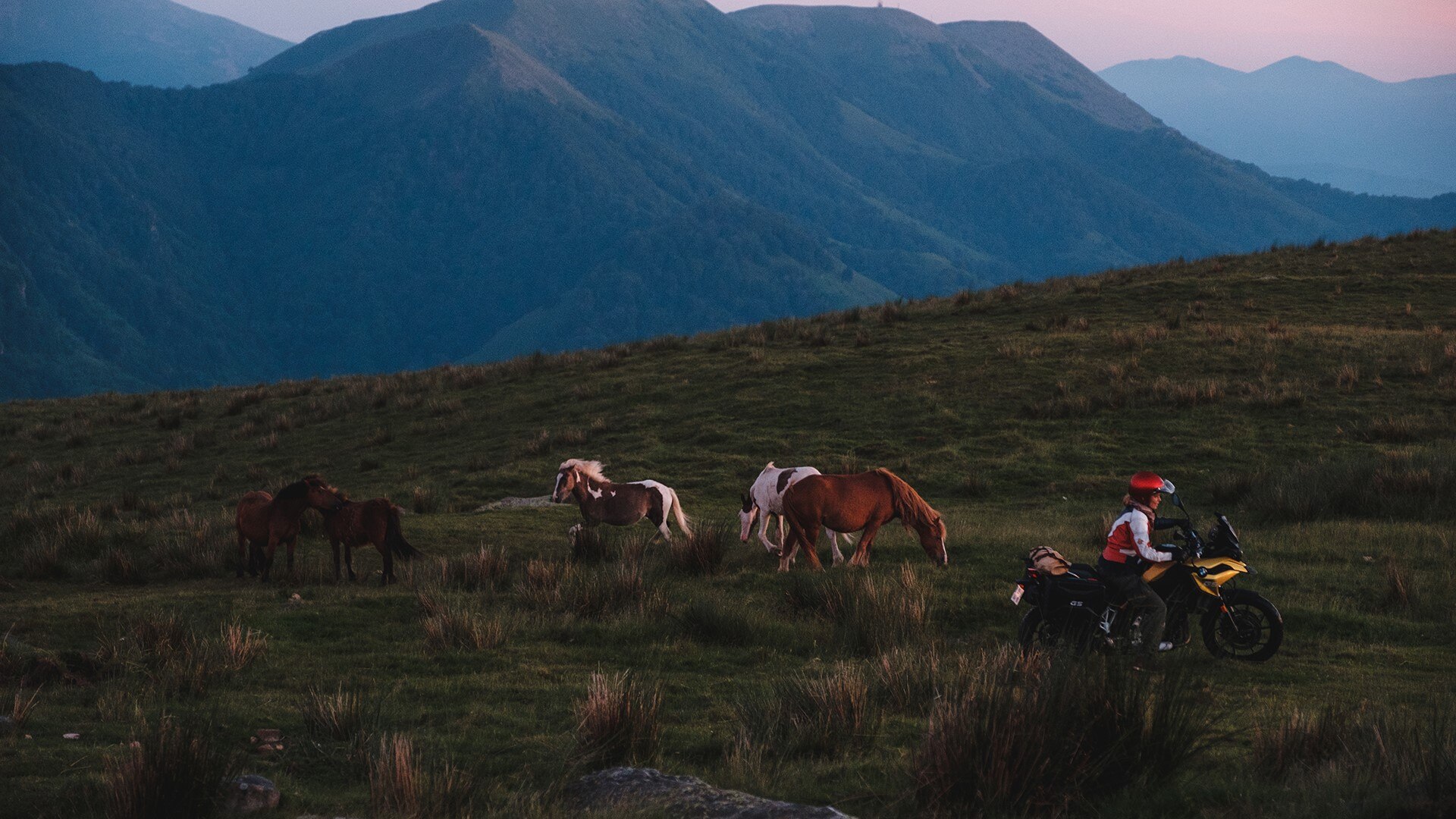 Jour 1 - Les French Folks ont quitté Biarritz vers 19h, avec une vue imprenable au coucher de soleil. Ils se sont rendus au sommet d’Artzamendi, qui surplombe la mer et dévoile la chaine Pyrénéenne à 360 degrés. Cette photo est prise au pied de la montagne, dans le dernier village que l’on croise avant d’enchainer les virages qui mènent au sommet: Itxassou.