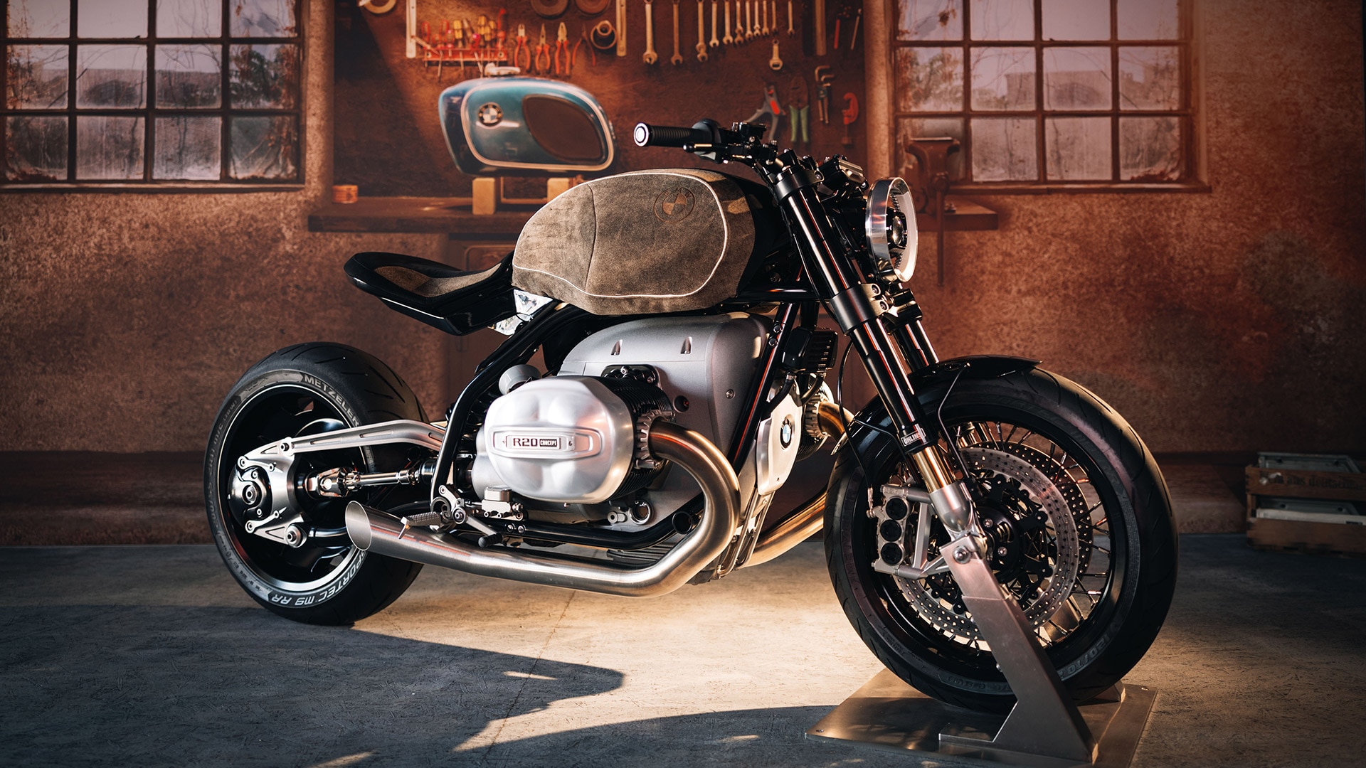 Il était inévitable de présenter le concept le plus enthousiasmant de l’année aux BMW Motorrad Days. La BMW R20 concept rappelle les BMW légendaires des années 1930 avec son design rétro puissant, tout en offrant les technologies les plus modernes et des performances d’avant-garde. La R20 concept se présente sous ses plus beaux atours pour célébrer le retour des BMW Motorrad Days à Garmisch-Partenkirchen : le réservoir arbore un superbe cuir de daim de la société Meindl Fashion, qui rappelle le look des pantalons en cuir typiques.
