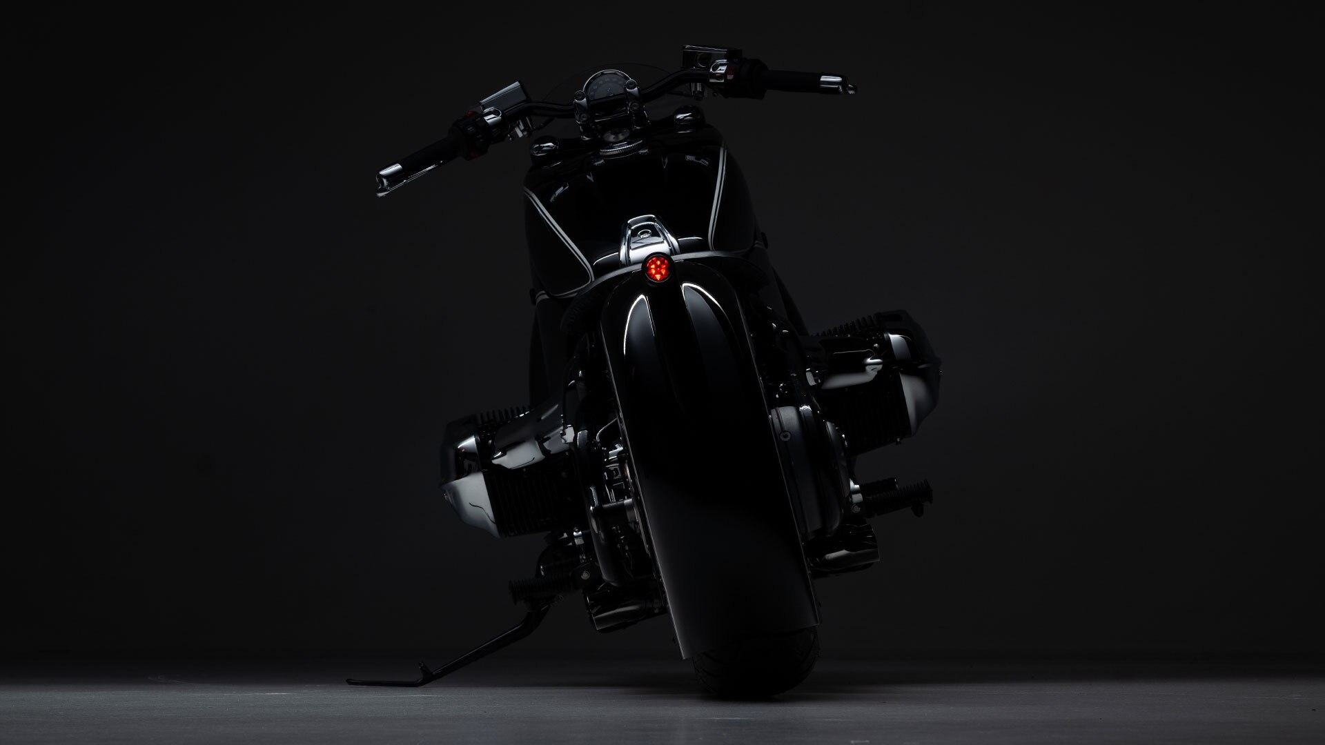 Avec seulement 8 mm d'espace, le carénage est presque collé au réservoir. Sa palette de couleurs classiques avec une double ligne iconographique court quasiment sans interruption sur toute l'impressionnante pièce fabriquée à la main. Naturellement, la peinture orne également le garde-boue arrière qui couvre la roue à 310° et reprend ainsi parfaitement le design de l'avant de la moto. Un mécanisme à charnière permet de changer la roue. Des ouvertures judicieusement placées permettent de voir le frein à disque et le moteur. Ici encore, on voit ce qui fait l'esprit de la Spirit of Passion : elle s'associe au concept de la R 18 avec le plus grand respect et se transforme en véritable chef-d'œuvre.